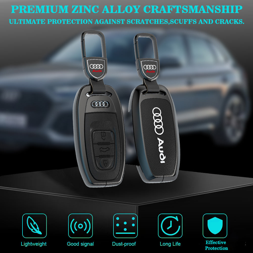 CKC-AUDI-B-Z-GM,AUDI Zinc Alloy Key Cover with Keychain | Smart Key Fob Protector | Durable Anti-Scratch Metal Case