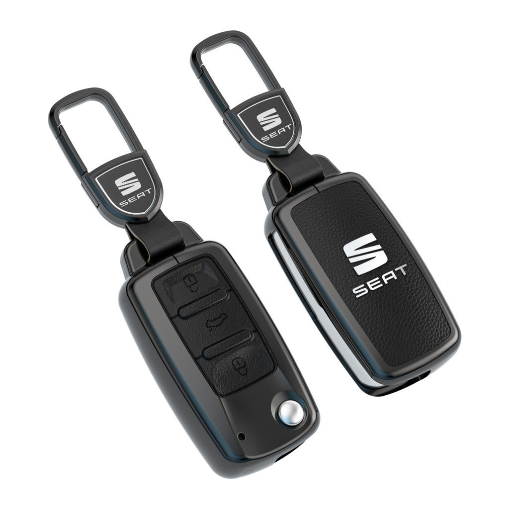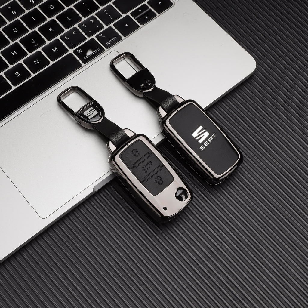 CKC-SEAT-A-Z-GM,SEAT Zinc Alloy Key Cover with Keychain | Smart Key Fob Protector | Durable Anti-Scratch Metal Case